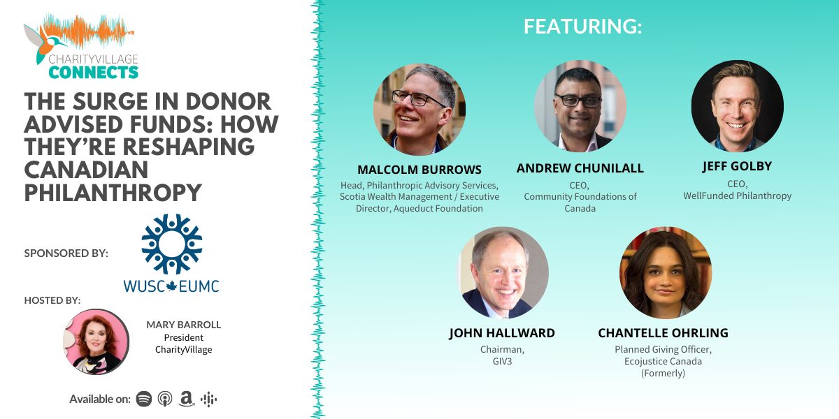 In this episode of CharityVillage Connects, we take an in-depth look at donor-advised funds (DAFs), a method for Canadians to give to charity that is increasing rapidly in popularity. With more than $20 billion sitting in DAF accounts across the country — funds that donors have claimed tax credits for, but that have not yet been distributed to the charities they were meant to support — important questions are emerging about their role in Canada’s charitable landscape. Do DAFs provide valuable flexibility for donors, or do they delay urgently needed support for charities facing rising demand? Join us as we explore how DAFs work, the benefits they offer, and the growing calls to ensure every donated dollar makes a timely difference.