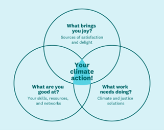 Try this exercise: Dr. Ayana Elizabeth Johnson has an excellent Venn diagram exercise to bring this all together. Take 10-15 minutes to check it out and find where your passions and skills intersect with the work the world needs.